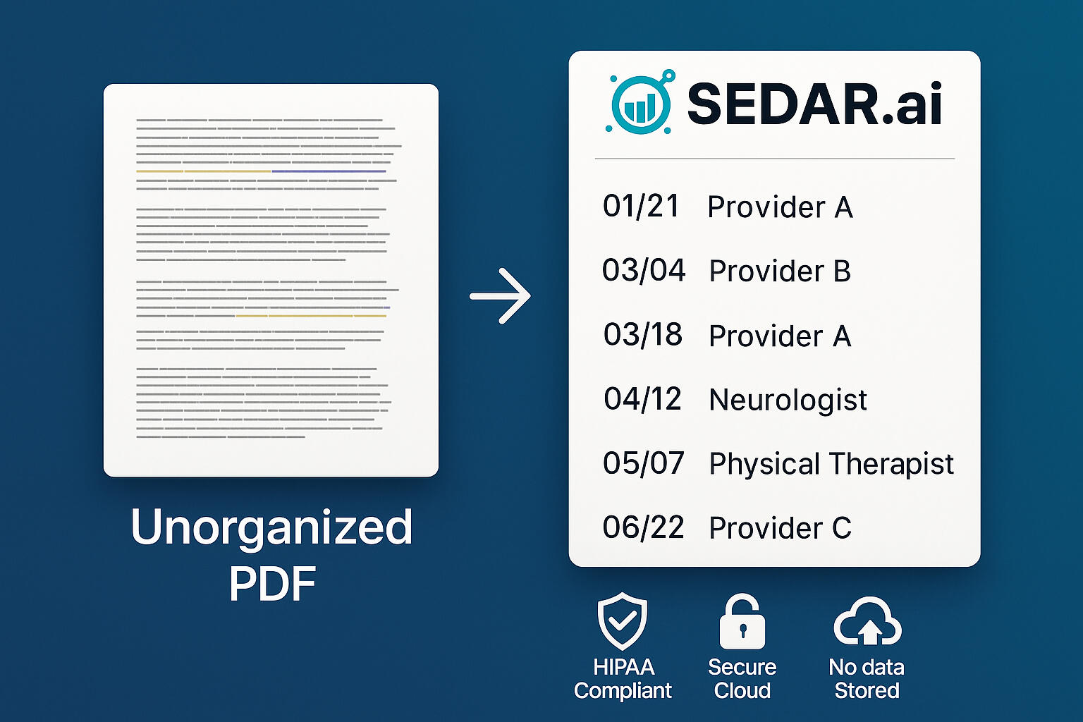 Turn thousands of pages into a clean, structured timeline in seconds.